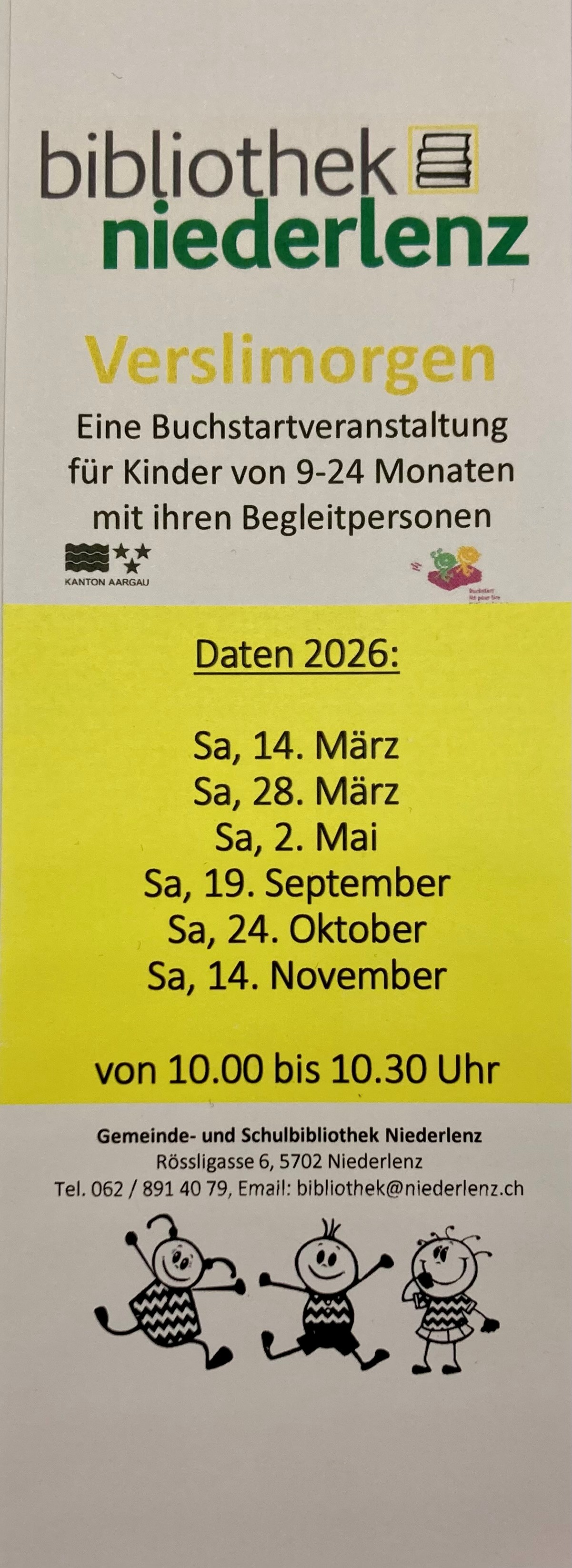 Jeweils um 9.30 Uhr für Kinder von 0-3 Jahren mit einer Begleitperson.