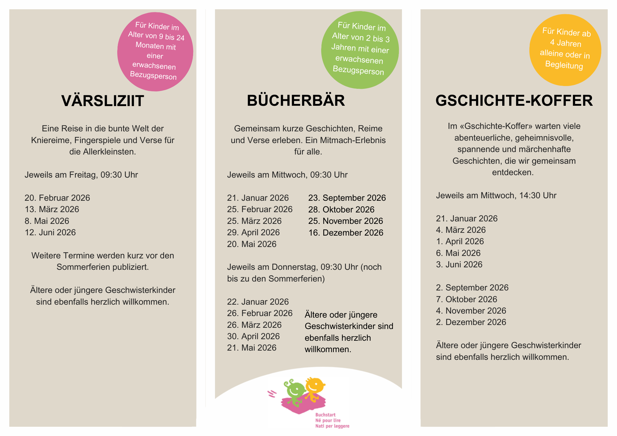 Buchstart für 0-3jährige in Begleitung der Eltern oder Grosseltern, mit der Leseanimatorin Maja Gautschi